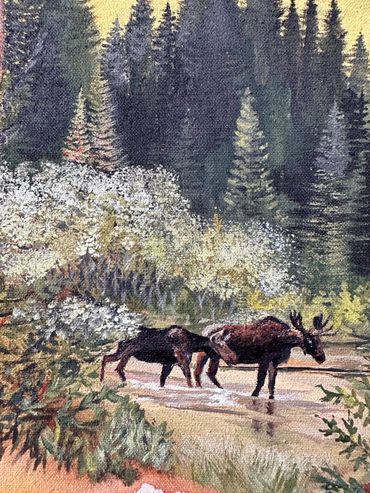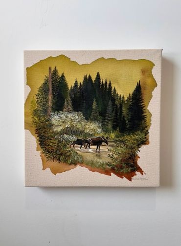 20 ans plus tard, me voilà les deux pieds dedans! Vivant maintenant avec ma famille au coeur d'une forêt stimulante et énergisante, je ne peux faire autrement que de sortir cette créativité sur des toiles, cette fois à l'acrylique.